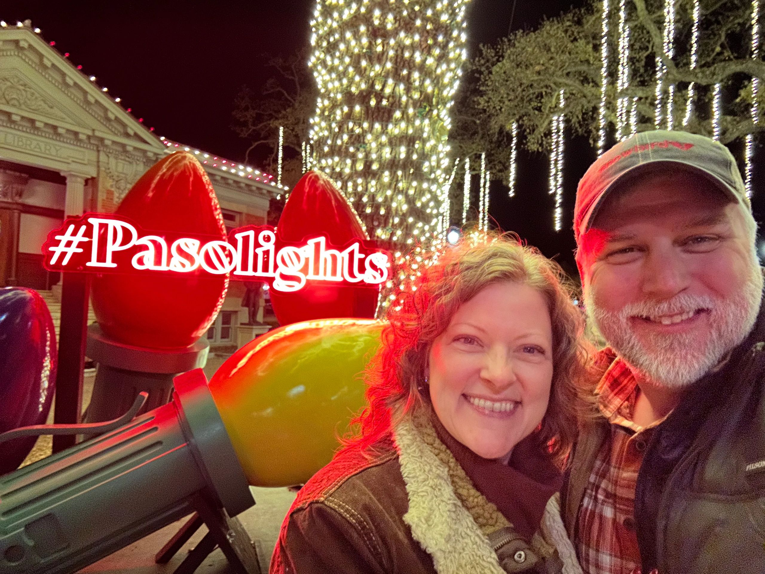 * Paso Robles, CA - 14 nights here. This was a destination on our bucket list. We fell in love with the wine of this area a few years ago and had the pleasure of getting to visit in person now! Spending time here during the holiday season was fantastic. Our first night in town there was a Christmas Parade that we happened upon and the town square had all of its trees wrapped in lights. I love that! Another evening closed down their historic Vine Street and all the houses and businesses on the 5 block stretch are decorated; one house was the "home" of Ebenezer Scrooge and he did a whole bit with the crowd outside. There was a mini sledding hill with trucked-in snow. A few houses had musicians, there was a stage with local dance troupes performing, and of course there was good people watching as we wandered the street.